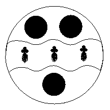 Argent, a fess wavy ermine between three roundels sable.