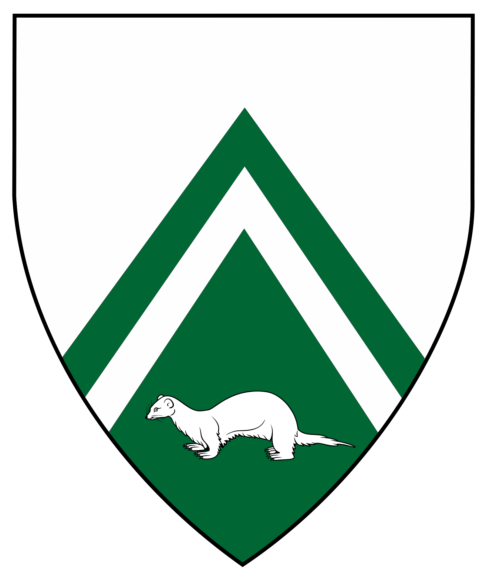 Per chevron argent and vert, a chevron counterchanged, in base an otter statant argent.